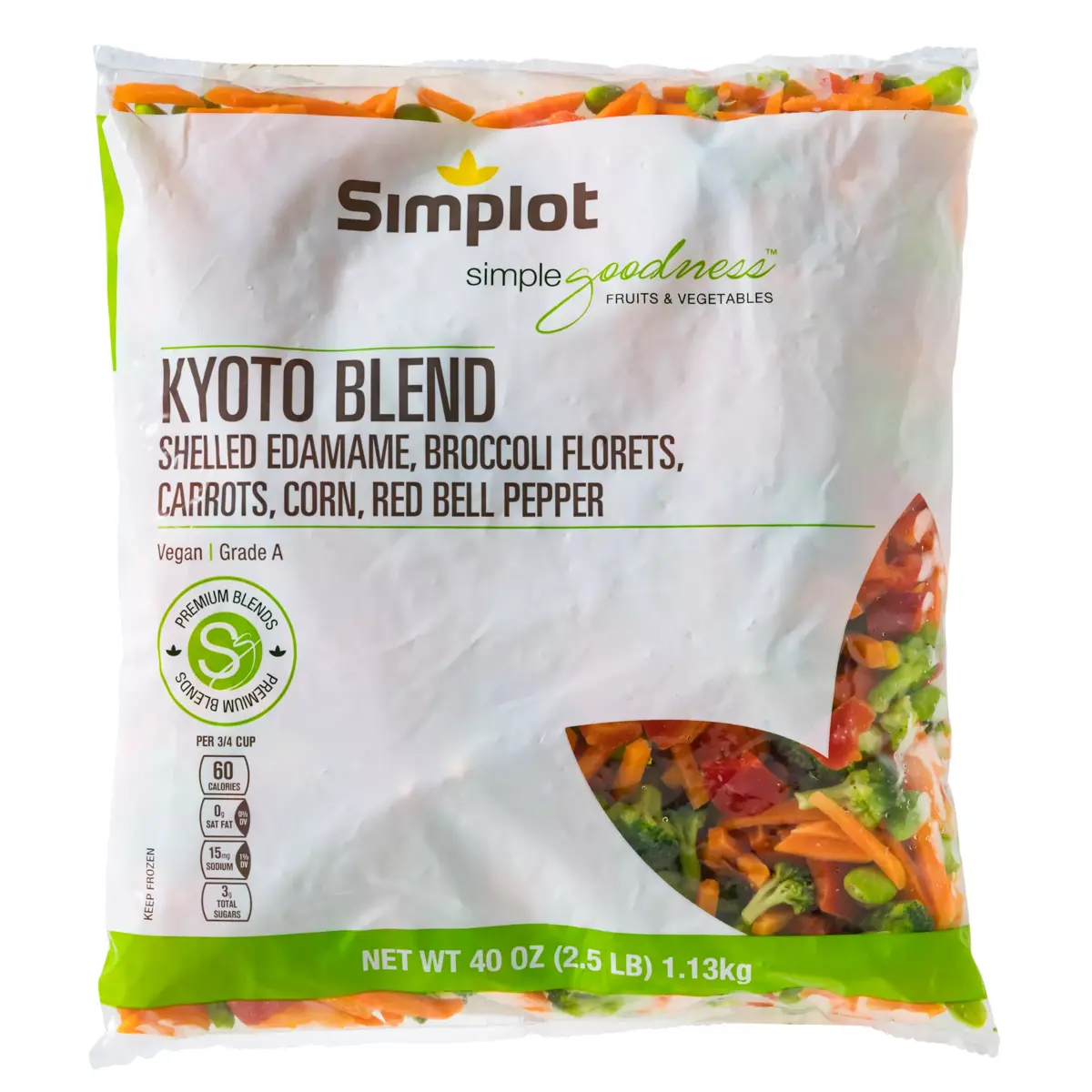 Simplot Simple Goodness™ Premium Vegetables make a statement with their upscale, hand-cut appearance, bright color, and outstanding flavor. We do all the washing, slicing and trimming, so you get only 100% useable product and 0% waste. This Asian-style vegetable and protein blend works wonders as a side or in recipes.