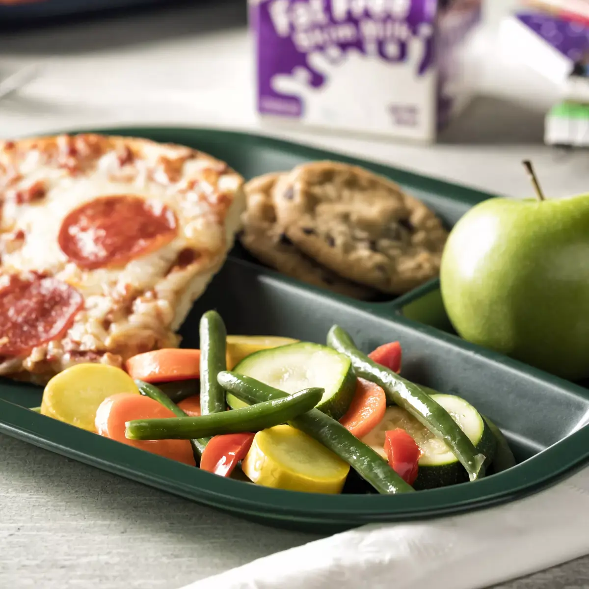 - Farm-fresh green beans, carrots, yellow squash, zucchini and red bell pepper